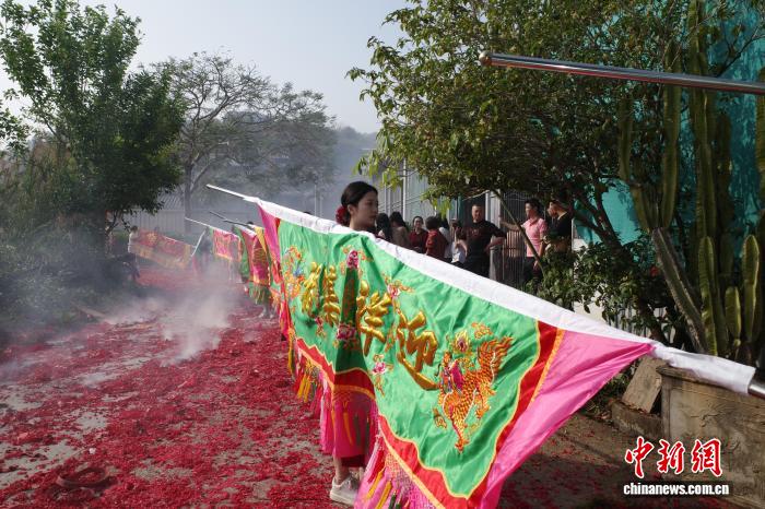 (新春走基层)广东潮州乡村民俗扛标旗
